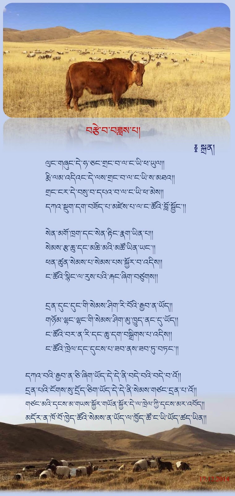 ངོ་གདོང་རྒས་གཉེར་རི་མོ་ཚོད་མེད་དུ་ལྷུང་ཡང་།།